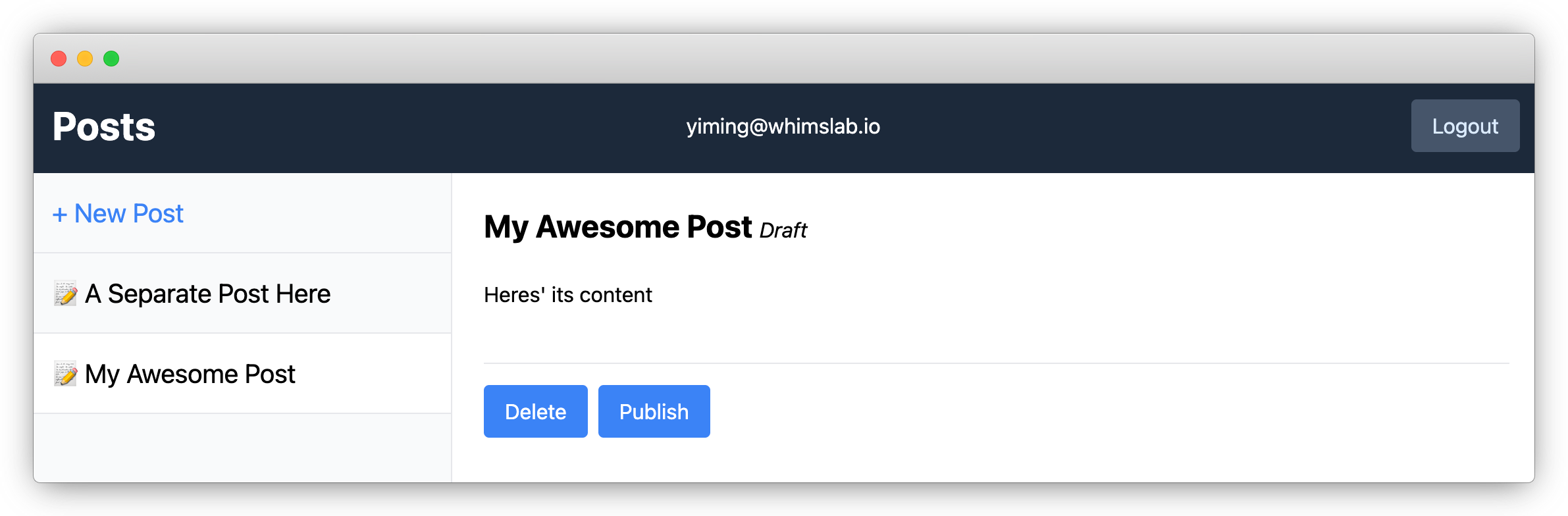 🎉 Congratulations! You've made a simple blogging app without manually implementing any access control logic. Now test it out and see if you can create posts and manage them.